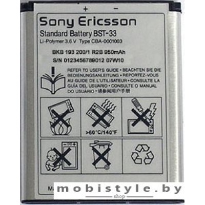Аккумулятор для телефона Sony Ericsson BST-33