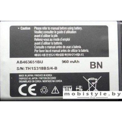 Аккумулятор для телефона Samsung S3650 Corby, S5620 Monte, S7070 и др. (AB463651BU)