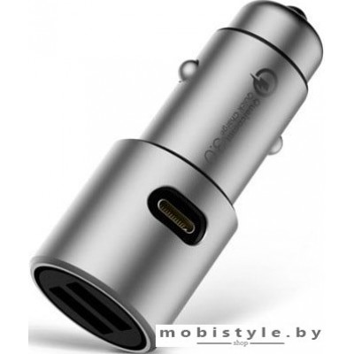 автомобильное зарядное для телефонов/для планшетов с разъемом USB Type-C/USB (нужен кабель), 3 А, цвет серебристый