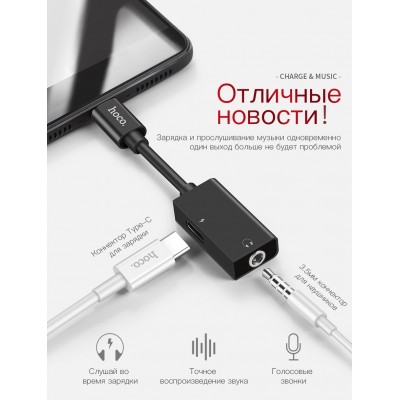 Компания Hoco предлагает решение для мобильных устройств с одним разъёмом type-C, которое не просто позволит Вам прослушивать музыку, но и одновременно заряжать Ваше устройство.