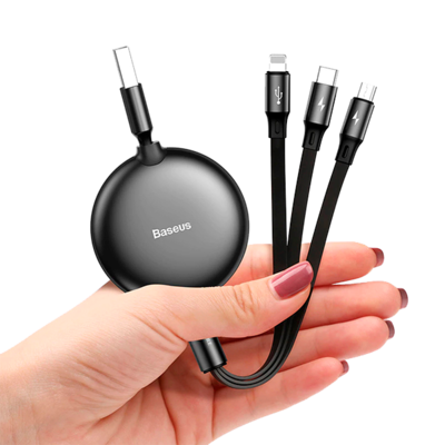 Кабель-рулетка Baseus Little Octopus 3 в 1 adjustable cable M+L+T 1.2m 3.5A черный