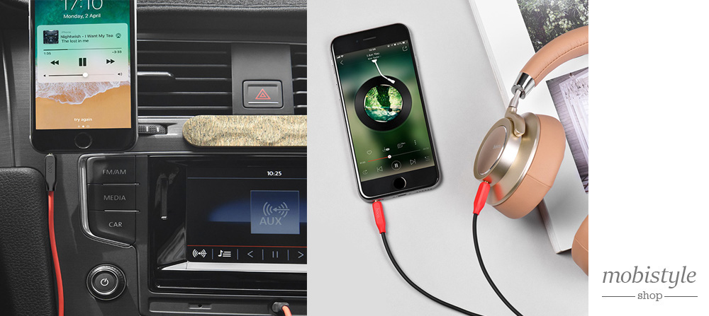 UPA11 Аудиокабель AUX 1м TPE гибкая оплетка с кабелем из меди, позолоченные штекеры
