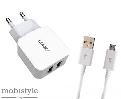 Сетевое зарядное устройство LDNIO A2202 2USB белое с кабелем micro USB