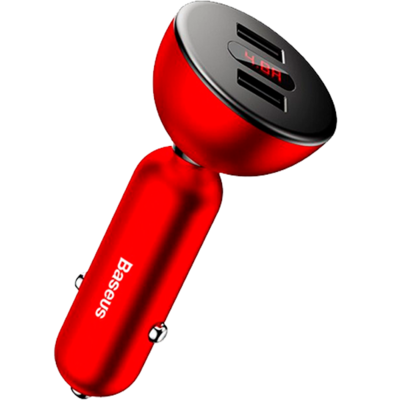 Автомобильная зарядка Baseus Shake-head Digital Display красный