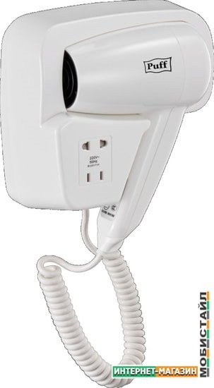 Артикул: Puff-1200B фен для волос с доп. розеткой, белый