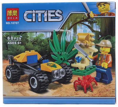 Конструктор BELA 10707 Джунгли ʺПеревозчик Песчаного Баггиʺ 60 дет. в кор.16х14х5см