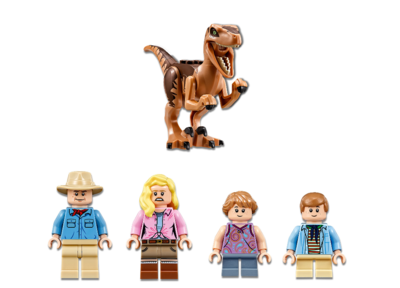 В наборе Вы найдете подвижную фигурку Велоцираптора, складную лестницу и 4 фигурки : Алан Грант, Элли Сэттлер, Лекс и Тим Мёрфи.