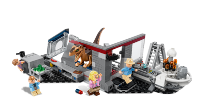 В наборе Юрский период "Охота на рапторов" главные персонажи сталкиваются с агрессивными Велоцирапторами. Несмотря на надежную защиту, одному Велоцираптору удалось проникнуть внутрь помещения.