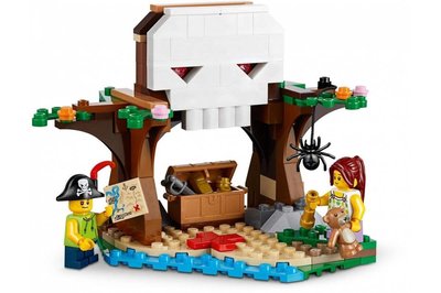 Настоящие пиратские приключения ждут ребят, которые отправились на поиски запрятанного клада. В наборе помимо домика на дереве, в корнях которого спрятан тайник, есть пиратский корабль и Пещера Черепа. Размер домика 20?14?19 см, корабля - 11?22?7 см, пещеры - 10?16?12 см.
