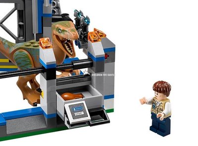 Набор состоит из вольера с открывающимися дверьми, квадроцикла. И самое интересное: в наборе две крупных фигурки динозавров и две минифигурки героев фильма "Мир Юрского Периода".
