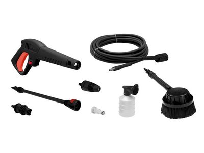 Очиститель высокого давления; Шланг высоконапорный - 8м; Пистолет; Удлинительная насадка; Грязевая фреза; Плоская фреза; Пеногенератор; Щетка вращающаяся; Фильтр тонкой очистки.