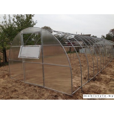 теплица, арочная форма, каркас: оцинкованная труба, покрытие: сотовый поликарбонат, нагрузка до 40 кг/м²