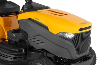 - Новый садовый трактор STIGA Estate 3398 HW комплектуется двухцилиндровым двигателем Briggs & Stratton полезной выходной мощностью 11,45 кВт при 2800 об/мин и имеет гидростатическую передачу с педальным управлением