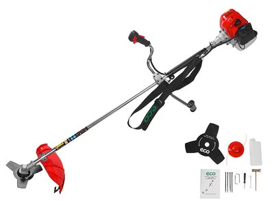 Аксессуары: - Двуплечный ремень;- Косильная головка;- Пильный диск;- Трехлопастной нож;- Набор инструментов;- Ёмкость для приготовления топливной смеси;- Руководство по эксплуатации.