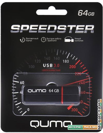 Накопитель QUMO 64GB USB 3.0 Speedster Black, цвет корпуса черный. Высокоскоростной флеш-накопитель с «умным колпачком», который надевается на оба конца корпуса