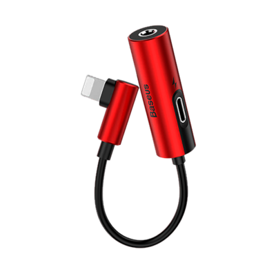 Аудио-переходник для iPhone Baseus L42 IP Male to 3.5mm+IP Female Adapter красный