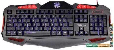 Игровая клавиатура Qumo Axe K03, проводная, 104 + 14 клавиш, встроенные подсветки общая + кнопок 7 цветов.