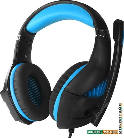 Гарнитура игровая с подсветкой CROWN CMGH-2101 Black&blue (Виртуальный звук 7.1, Подключение USB, Частотный диапазон: 20Гц-20,000 Гц , Кабель 3.2м, Динамки 50 мм, регулировка громкости, микрофон на поворотной ножке)