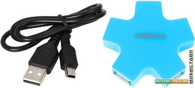 USB 2.0, 4 порта, пассивное питание, цвет синий