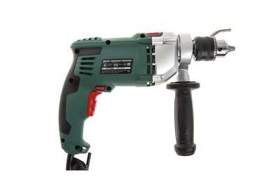 Ударная дрель с двигателем мощностью 950 Вт идеально подойдет для сверления дерева, металла и кафеля в безударном режиме, а также кирпича и легкого бетона в ударном режиме. Корпус редуктора выполнен из металла, что способствует ускоренному теплообмену и повышает прочность конструкции. Благодаря ключевому патрону обеспечивается максимально надежная фиксация оснастки. Для точной настройки инструмента в зависимости от материала предусмотрена электронная регулировка оборотов. Извлечь сверло иил вывернуть крепеж поможет встроенный реверс. В комплект поставки входит дополнительная рукоятка и ограничитель глубины сверления.