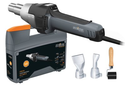 Набор для укладки рубероида, битумной черепицы и пайки брезента идеально подходит для профессионалов. Термовоздуходувка HG 2620 E - для всех, кто предпочитает лишь самое лучшее, когда дело касается производительности и точности: при 2300 Вт мощности, термовоздуходувка HG 2620E легко управляется с помощью джойстика, с возможностью шага в 10 С между 50 и 70 °С, предоставляя возможность установки 4 индивидуально настроенных программ. Температура отображается на светодиодном дисплее. Есть возможность быстрой регулировки скорости потока воздуха в диапазоне 150-500 л/мин. При полном давлении в 4000 Па, ресурс эксплуатации бесщеточного двигателя нашего флагмана составляет более 10000 часов. Благодаря надежному проектированию и защите электронных компонентов с помощью противопылевого фильтра тонкой очистки, 4 индивидуальным программам и шнуру питания Н07 для тяжелых режимов работы, данный инструмент является безопасным, надежным помощником на любой строительной площадке. Если коротко: это лучший инструмент для подачи горячего воздуха, который мы когда-либо выпускали. Особенности: