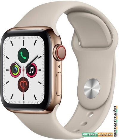 Умные часы Apple Watch Series 5 LTE 40 мм (сталь золотистый/песочный спортивный)